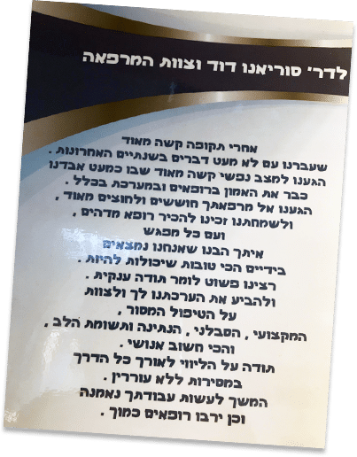 תודה שהחזרת לי את הבריאות ואיכות החיים.